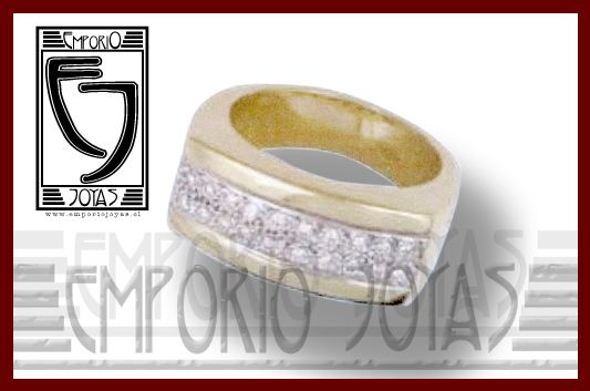 El anillo corresponde a un doble medio cintillo, imponente, atractivo y moderno. La doble banda de 11 diamantes están engastadas en pavé sobre una superficie semi-plana. Posee un ancho espectacular para destacarse en el dedo. Perfecto para sella el compromiso de matrimonio. Tiempo de espera 7 días, consulte factibilidad menor plazo.